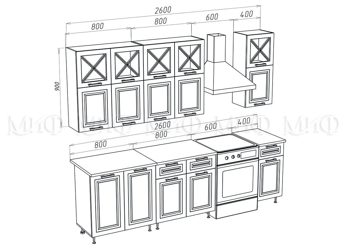 • Высота шкафов: Верхние 900 мм/Нижние 850 мм
